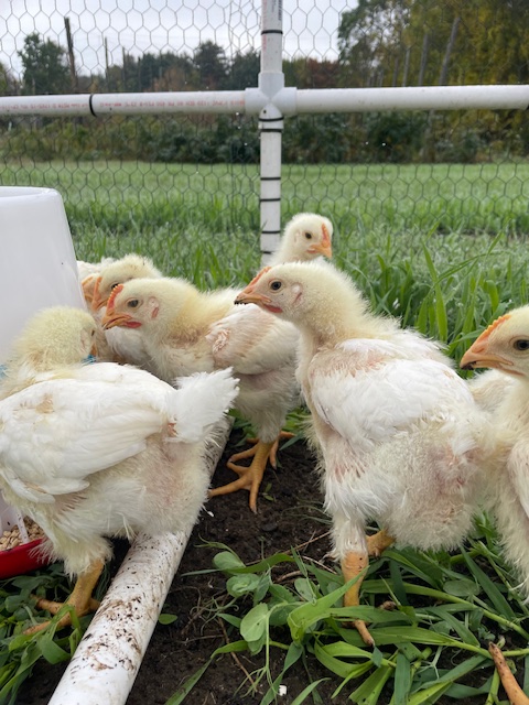 All Cornish Crosses have been bred to utilize feed efficiently and put on muscle fast. To put it into perspective, in the 1920’s “meat birds” would take 16 weeks to reach a market weight of about 2.5lbs. Today, Cornish Crosses reach a market weight of 5-7lbs in about 8 weeks. This does not come without its downsides. These birds are unable to reproduce. If Cornish Crosses are not processed at the 8 week mark, they will die. Because their bodies put on weight so fast, their bones don’t have enough time to develop properly. Meaning their legs can’t bear the weight of their body and can break. Another issue is that their hearts can easily give out, trying to pump blood through all of the muscles.