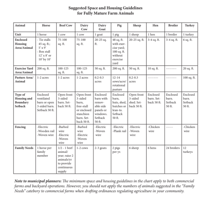 This chart is from UNH Extension’s Housing and Spacing Guidelines for Livestock.